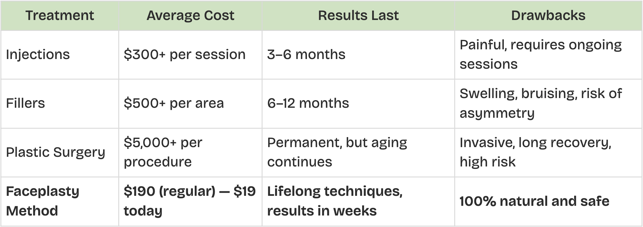 In our fast-paced world, quick-fix treatments provide only temporary results. The Faceplasty method stands apart by addressing the root causes of aging. From sagging skin and wrinkles to poor posture, this unique approach combines facial fitness, osteopathy, and cranial bone techniques for a truly holistic and lasting transformation.