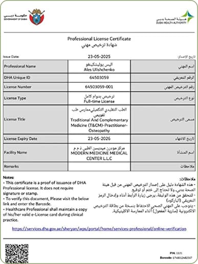 Dr. Ales Ulishchenko, a renowned osteopath and plastic surgeon with 18 years of experience, is