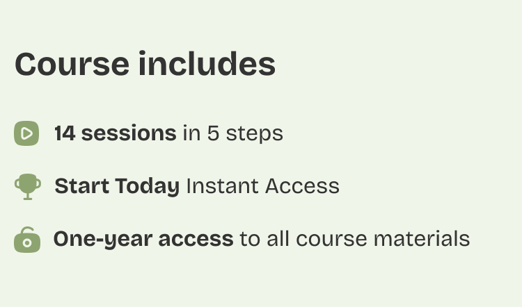 You’ll get 1-year access to all lessons, materials, and updates. Learn at your own pace, whenever