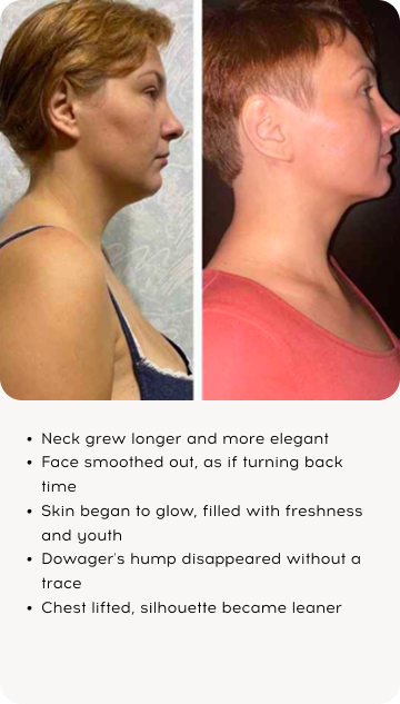 No more dowager's hump or double chin, longer neck, better posture, facial symmetry