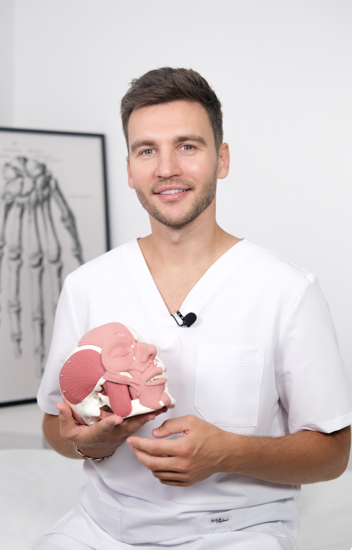 A licensed osteopath and surgeon, he is the creator of Faceplastica — a non-invasive method that restores facial harmony, posture, and natural proportions by working with the body’s deep structures.