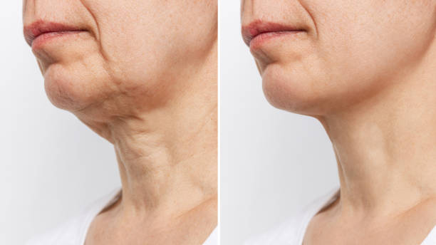 If the platysma and fascia of the neck are compressed and toned, it leads to skin laxity, which causes the skin to sag. The tension of the platysma and superficial fascia of the neck results in the formation of pulls, early wrinkles, folds and ring wrinkles on the neck, cheeks ‘creep’ downwards, the corners of the lips droop, even the breasts droop.