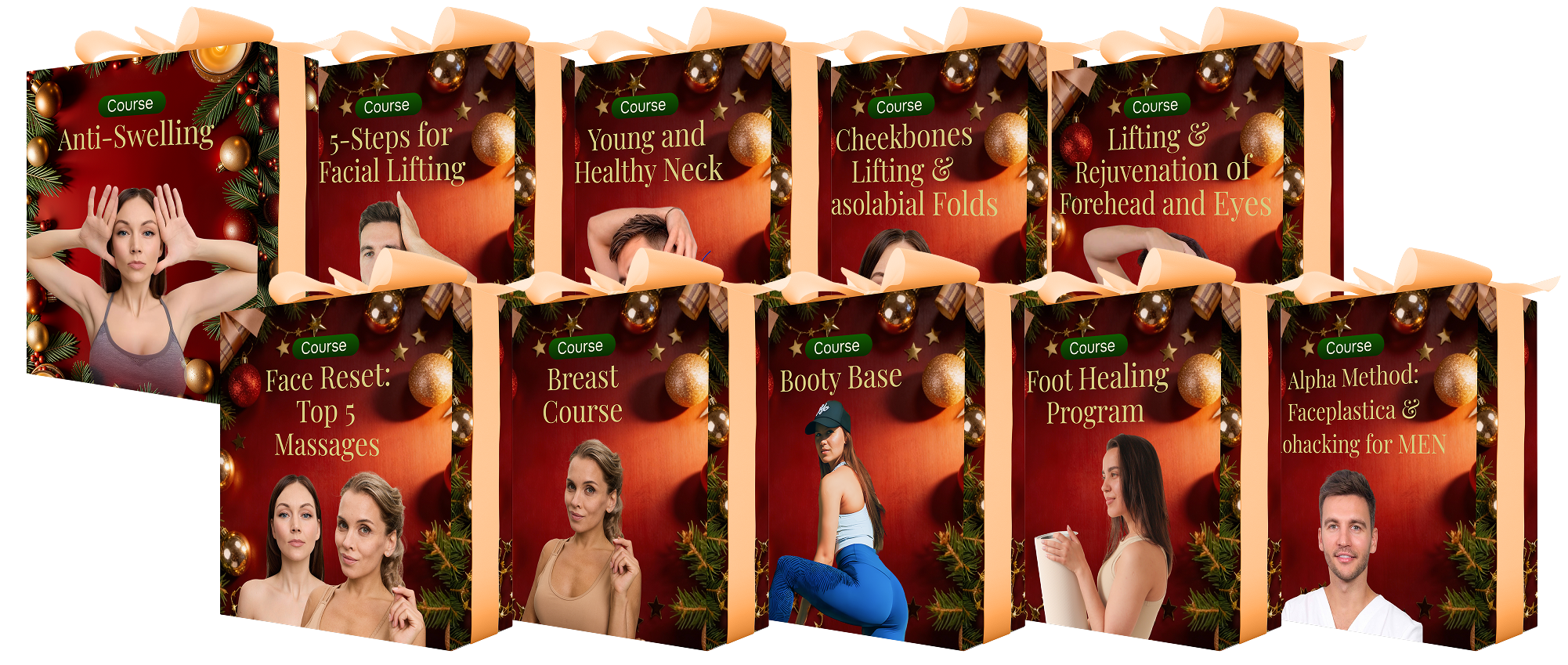 For a few days only, our signature Faceplastica & body courses from Dr. Ales are just $9 instead of $47–$87. Pick your main problem — puffy face, tired eyes, tech neck, sagging cheeks, swollen body, weak glutes, painful feet, or male aging — and fix it with a full step-by-step course.