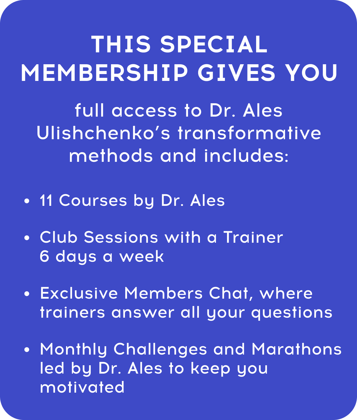 full access to Dr. Ales Ulishchenko’s transformative methods and includes: