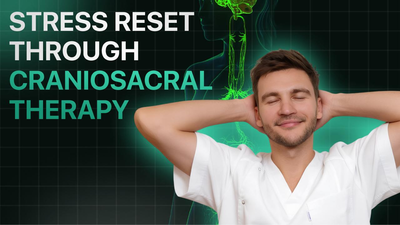 2. Craniosacral rhythm & fascial release: Your brain and spinal cord have a subtle, rhythmic pulse. Stress disrupts this rhythm, creating tension in the connective tissues (fascia) of your skull, spine, and sacrum. By learning to listen to and gently guide this rhythm, you release the physical "armor" of stress at its source.