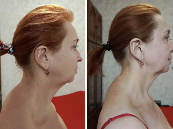 the jawline looks more sculpted and firm,