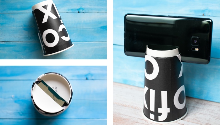 If you do not have a tripod, you can make a phone holder with your own hands, for example, from a paper cup: